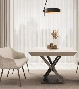 Mistral est une nouvelle collection de table à manger fixes et extensibles, avec un pied central en métal dans lequel les pièces s’entrecroisent, créant un design dynamique et moderne. Une collection très polyvalente qui offre de grandes possibilités de composition, grâce au possibilité d’un jeu chromatique qui permet l’utilisation de différentes couleurs dans les différentes pièces qui forment le pied.
