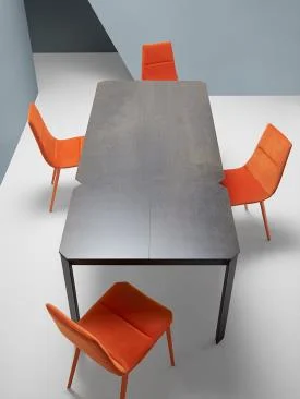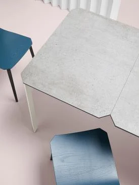 La collection Salt se compose d’une table fixe et une autre extensible avec deux hauteurs possibles. Les modèles de cette collection offrent des dimensions modérées afin de pouvoir obtenir de la place dans un espace réduit, étant son principal atout. Le plateau est en céramique laminée sur du verre et s’associe facilement aux pieds triangulaires grâce aux formes combinés sur les chants.