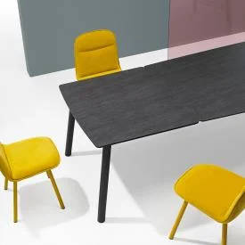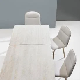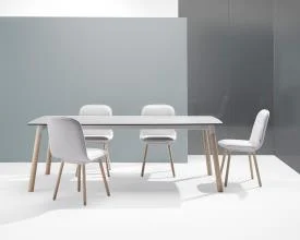 La collection de tables a été conçue par l’équipe de design de Mobliberica et se compose d’une table fixe et d’une table extensible. Celui-ci se caractérise par la combinaison de son plateau rectangulaire en céramique aux formes arrondies et de ses pieds circulaires inclinés. Les pieds peuvent être en frêne massif, ce qui donne une chaleur particulière à l’ensemble, ou en métal, ce qui donne au résultat plus de force et de caractère. Il est disponible en 16 mesures, autant pour sa version fixe que pour sa version extensible.